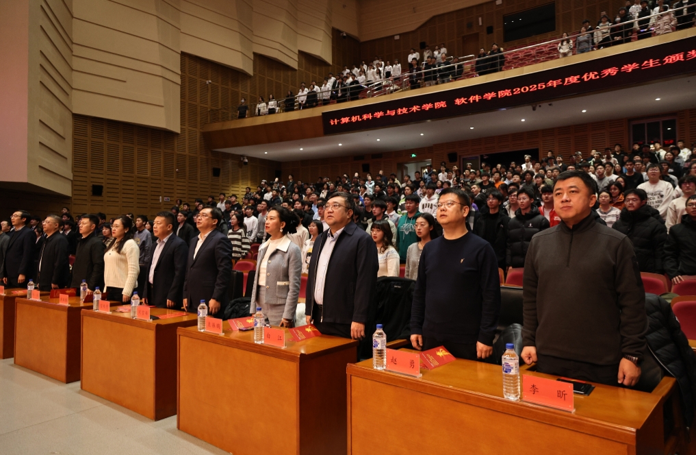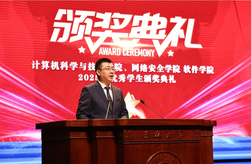 2025年度优秀学生颁奖典礼于鼎新大讲堂隆重举行。保卫处处长刘雪峰老师、学生心理健康指导中心主任朱丽雅老师、学生工作部副部长左振鹏老师、研究生工作部副部长马琨老师、学生就业创业指导与服务中心副主任白江老师、大数据和网络管理中心副主任张达鑫老师、计算机科学与技术欧洲杯党委书记宫皓宇老师,欧洲杯及中心党政领导班子、教职工代表以及2025级新生出席,计算机科学与技术欧洲杯党委副书记兼欧洲杯