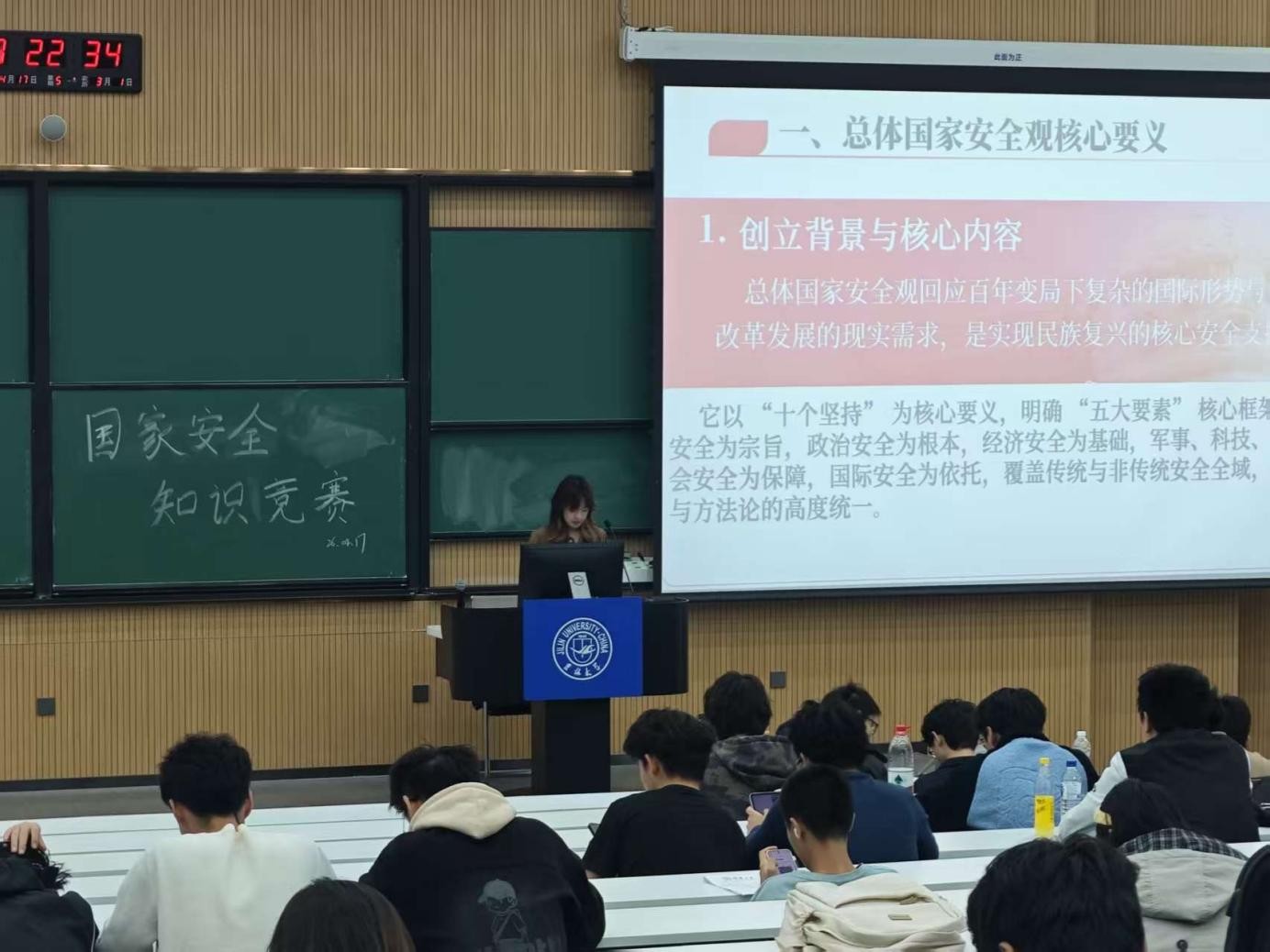 4月17日,“筑牢安全意识,争当国安卫士”国家安全知识竞赛在敬信楼第五阶梯教室举办。赛前,专家教师围绕总体国家安全观核心要义、中国特色国家安全道路、五大领域安全要点等内容开展专题辅导,从政治、经济、科技、文化、社会、生态等多维度解读“大安全”理念。竞赛吸引近120名同学参与,经过激烈角逐,11名同学脱颖而出,团委组织部工作人员为获奖选手颁发荣誉证书与奖品,鼓励大家以赛促学、以学促行。